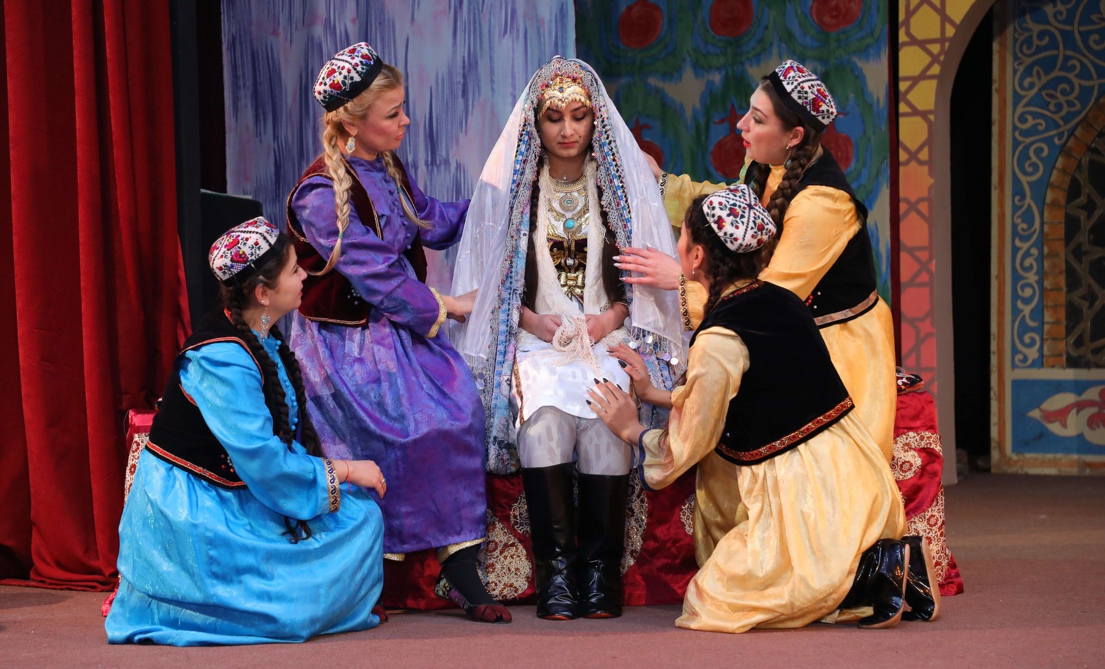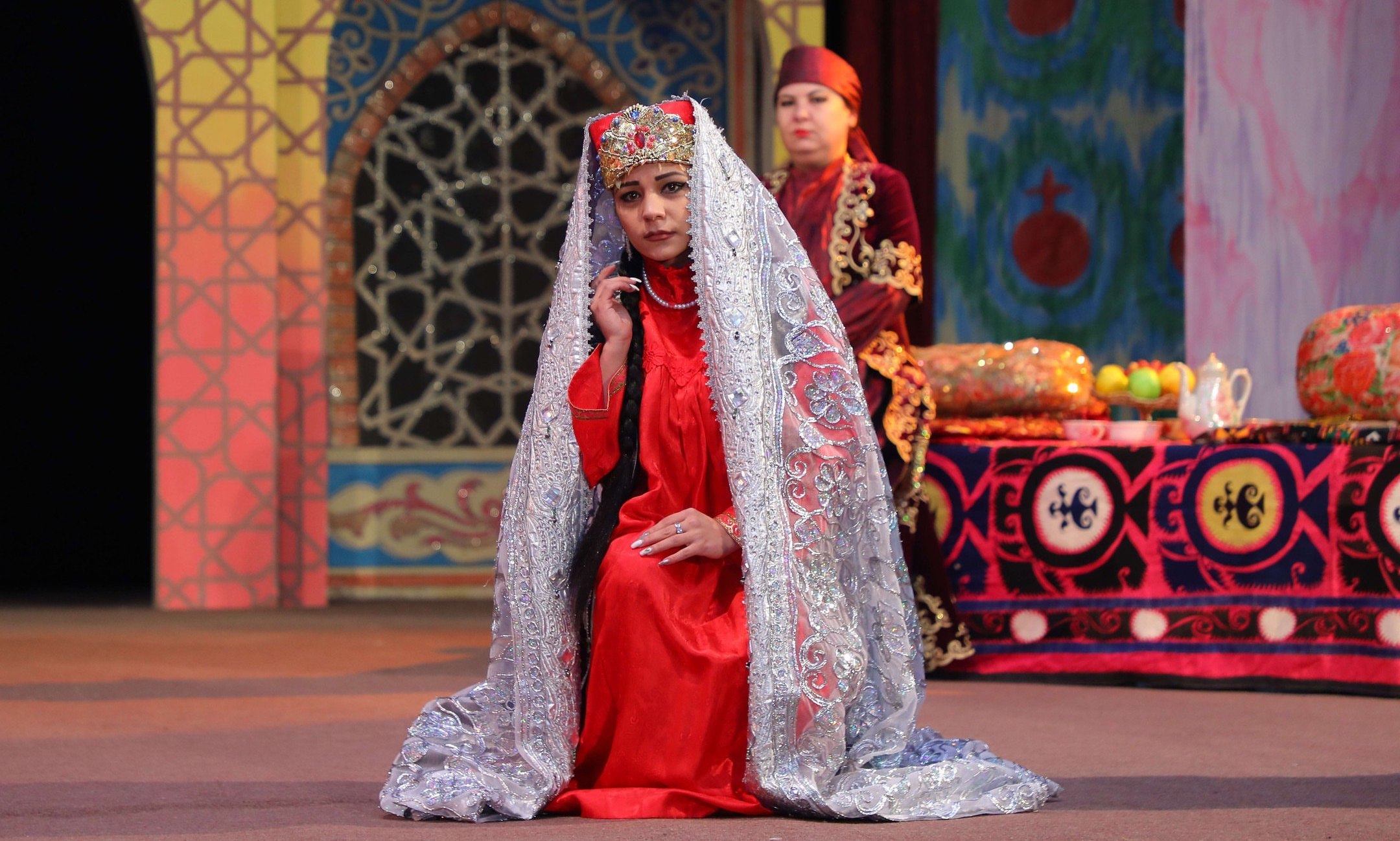 Marat Azimov’s production at the Uzbek National Academic Drama Theatre is presented as a staging of Qadiri’s novel in which “the idea of love is celebrated”, focusing not only on Otabek and Kumush but also on a whole constellation of nationally significant figures, including Yusufbek-hodji, Uzbek oyim, Mirzakarim kutidor, and Oftob oyim. The production reads as a representation of a moral and cultural code, with its characters embodying dignity, fidelity, honour and spiritual refinement.