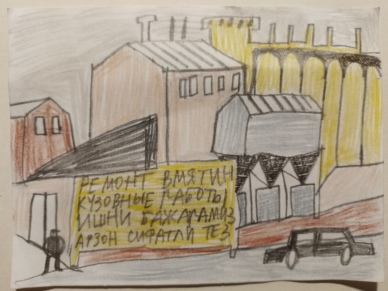 Начал рисовать в 25 лет — с засохших насекомых на подоконнике. Сегодня изображает балконы, дворы, вывески и многоэтажки Ташкента и других городов, видя в них красоту и ритм повседневности.