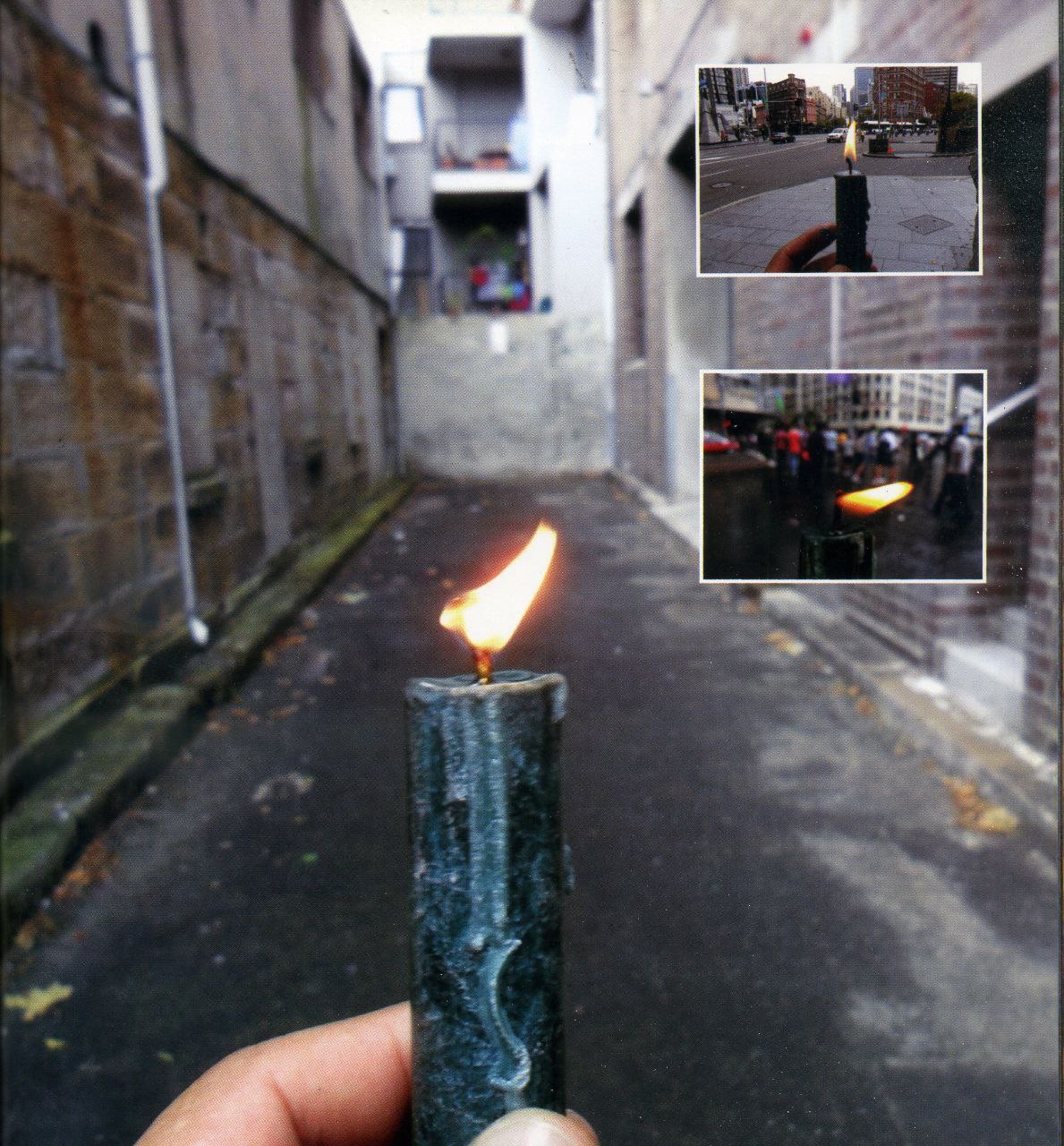 Из перформансов же я особо запомнил тот, который сделал в Сиднее, когда днем ходил по городу с зажженной свечой и искал самого себя. До этого был еще один перформанс в 2008 году, когда я закрывал банки, «консервируя» чистый воздух. Это был мой первый опыт в этом жанре, поэтому он оставил особенно яркий след.