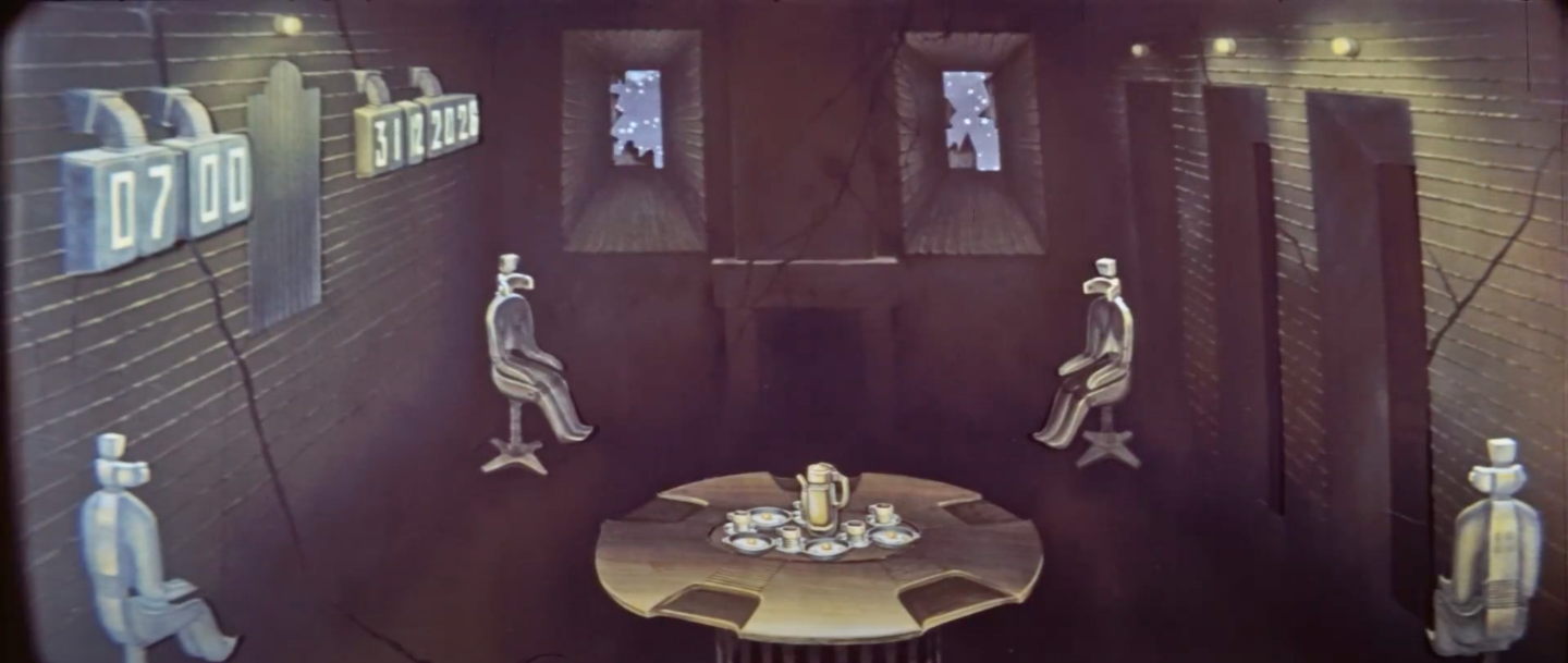На дворе — 31 декабря 2026 года. Робот накрывает праздничный стол, называет по именам отца, мать, бабушку и детей, зовет их в гостиную. Но никто не приходит. Потому что никого уже нет в живых. От семьи остался только пепел.