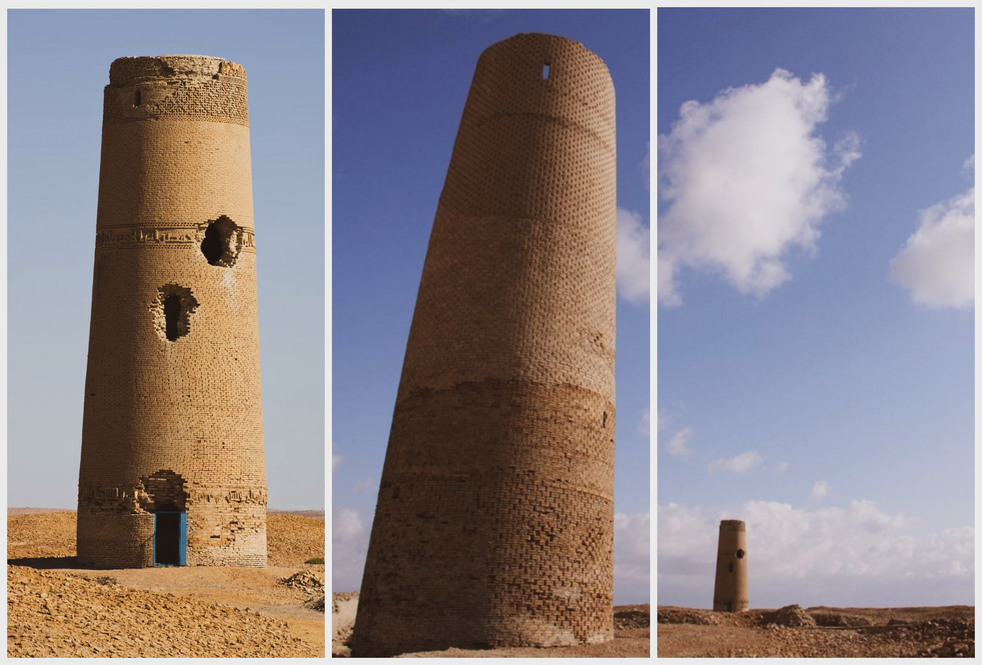 На просторах западного Туркменистана, среди полупустыни, стоят два минарета — северный и южный. Их стволы выжжены солнцем и покрыты геометрическими узорами из кирпича и куфическими надписями.Они стоят без мечети, без стен, без города — от некогда оживленного Дехистана остались только башни, с которыми ветер говорит на языке забвения.Северный минарет приписывают Абу Джафару Ахмеду — имя частично сохранилось на керамической ленте. Оба минарета сложены из обожженного кирпича, детали украшения можно разглядеть только вблизи. Здесь тишина почти абсолютная.