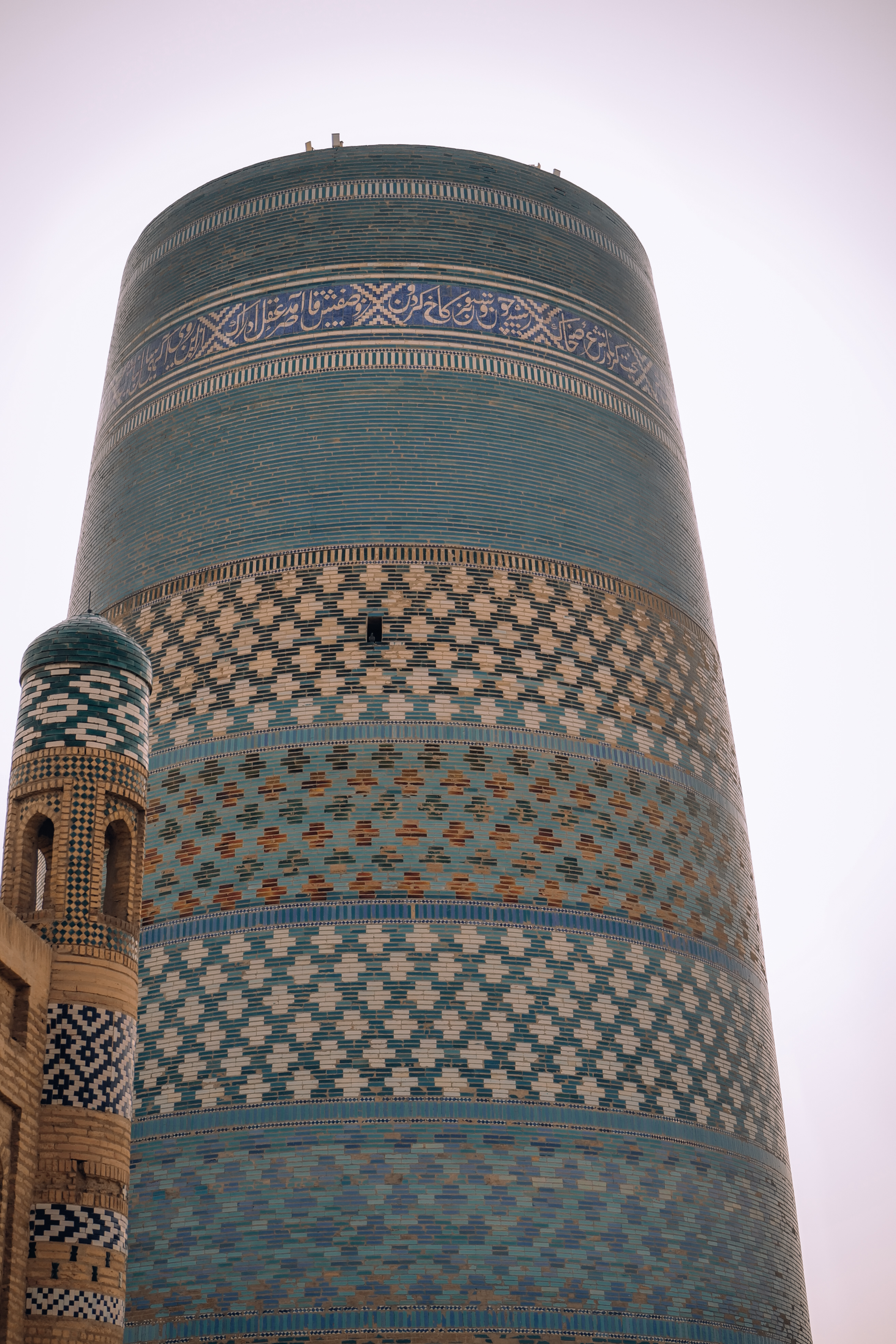 Самый высокий минарет Хивы. Узкий, изящный, украшен чередующимися полосами полированного кирпича и глазурованной плитки в бело-голубой гамме. На вершину ведет винтовая лестница из 175 ступеней. Открыта смотровая площадка. Билет на подъем — около 100 000 UZS.