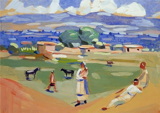 В этой работе появляется декоративность, форма становится более обобщенной, фон — насыщенно-цветовым и стилизованным.