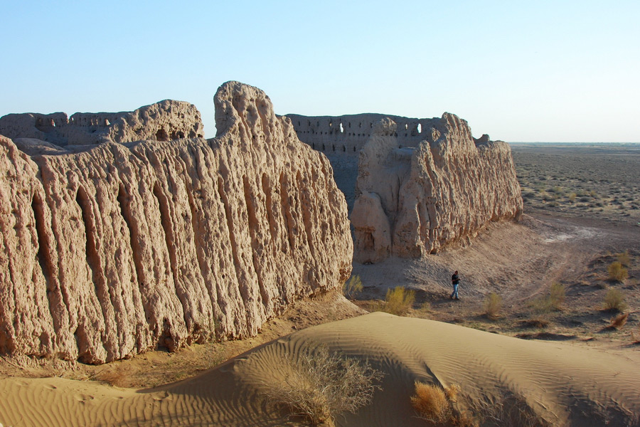 Аяз-кала это древняя крепость из трёх частей, построенная между четвёртым веком до нашей эры и четвёртым веком нашей эры. Стены из глины и кирпича с башнями до сих пор видны среди песков пустыни.