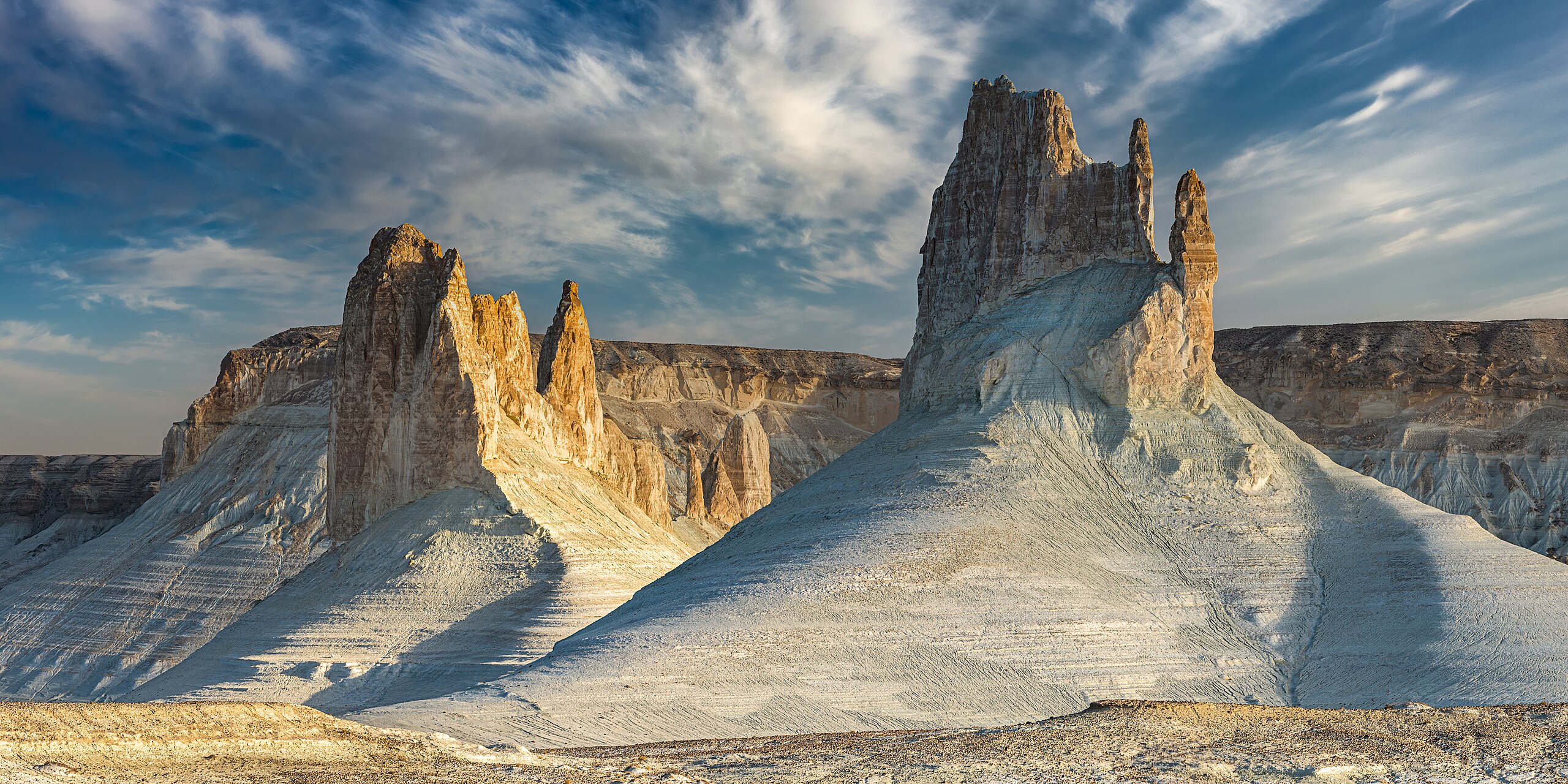 Обширное плато между Аральским морем и пустыней Кызылкум — одно из самых малоизученных мест страны. Его главная особенность — огромные, почти стометровые обрывы чинки и извилистые каньоны с необычными формами скал. Пейзажи здесь словно с другой планеты: слоистые известковые стены, солончаки и бескрайние пустынные просторы.