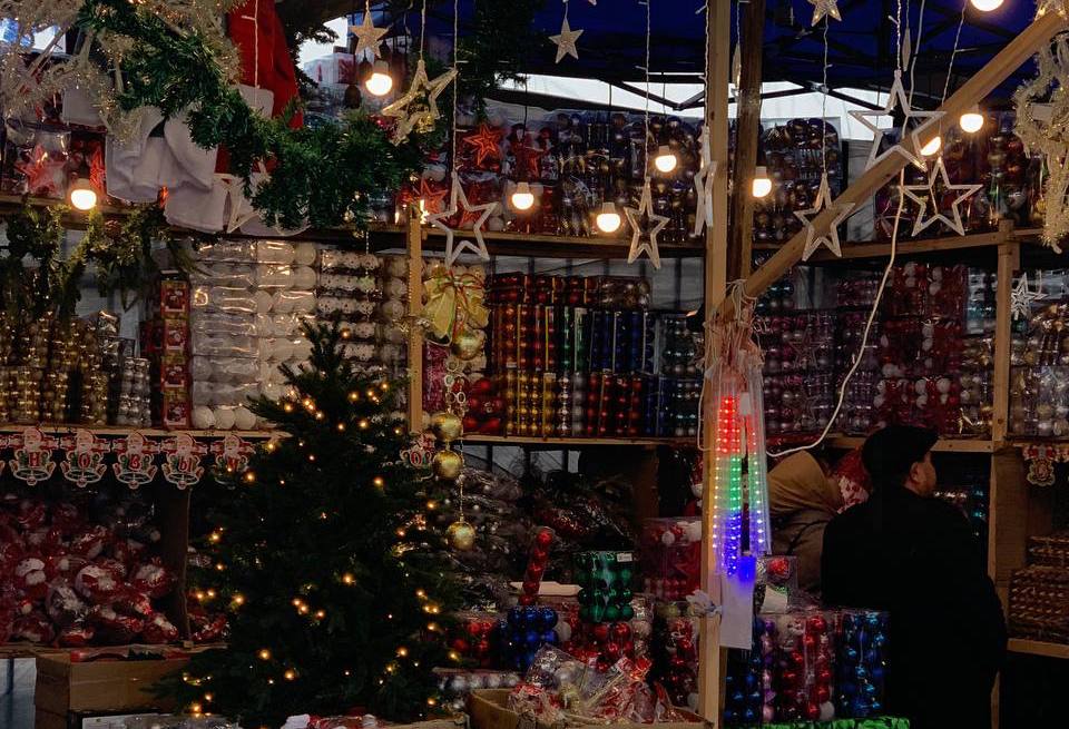 Многолюдный рынок, где легко найти праздничную мелочёвку: мишуру, пластиковые шары, украшения для дома. Часто встречаются наборы игрушек по приятным ценам — идеально для тех, кто хочет быстро и без лишних поисков нарядить ёлку.