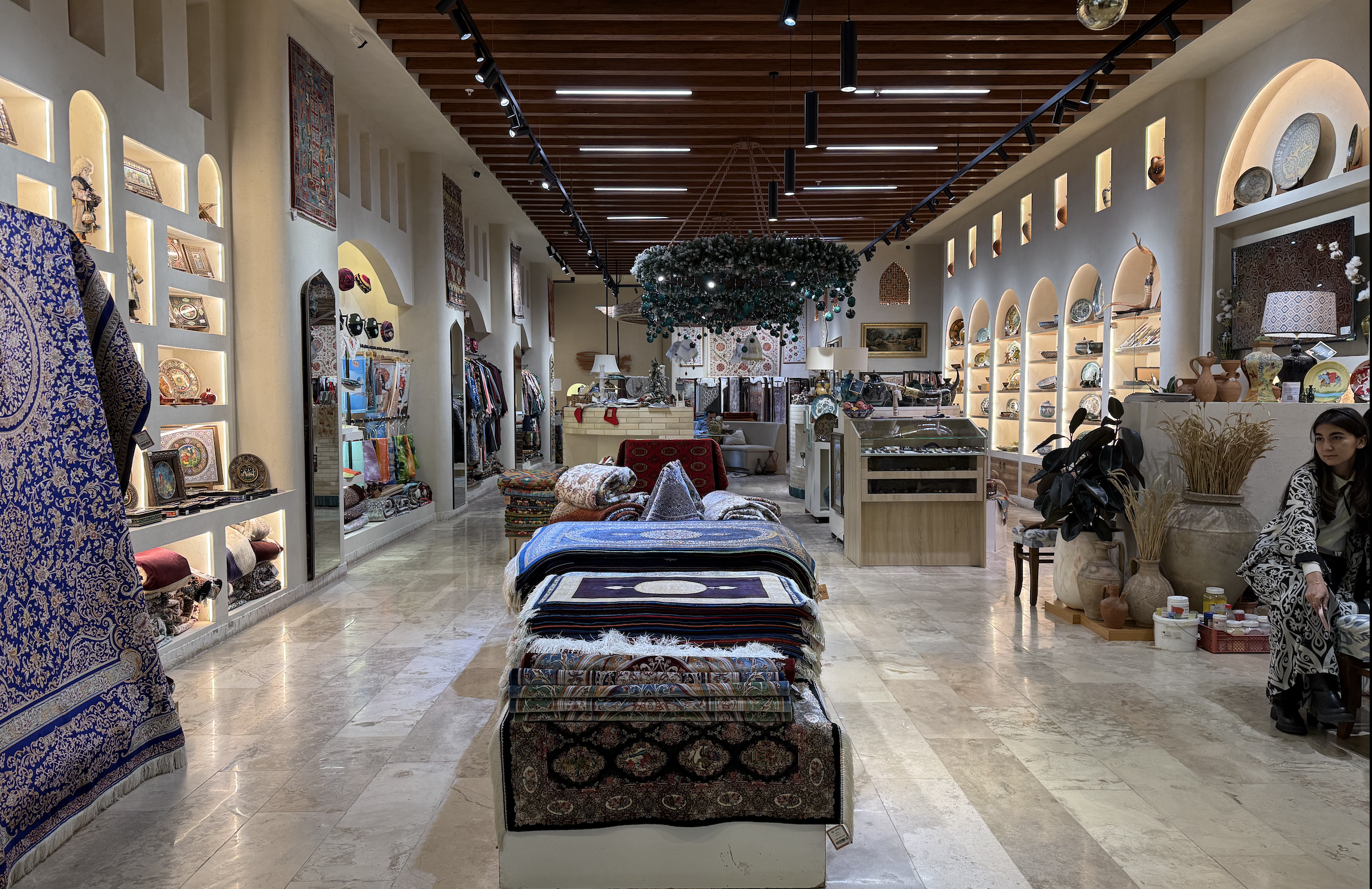 Здесь представлено современное узбекское прикладное искусство во всем его многообразии. Помимо авторской керамики, в пространстве можно увидеть изделия из фарфора, резные деревянные предметы, сюзане, традиционные ткани, ковры ручной работы, а также другие направления прикладного и изобразительного искусства. Все представленные предметы объединяет внимательный отбор, работа с натуральными материалами и бережное обращение к ремесленной традиции, переосмысленной в современном визуальном ключе.
