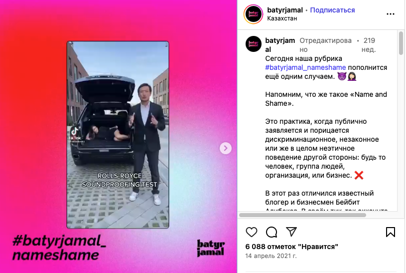 Скриншот: Instagram / Batyrjamal