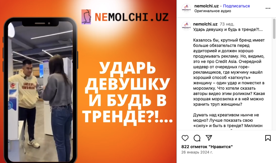 Скриншот: Instagram / NeMolchi.uz