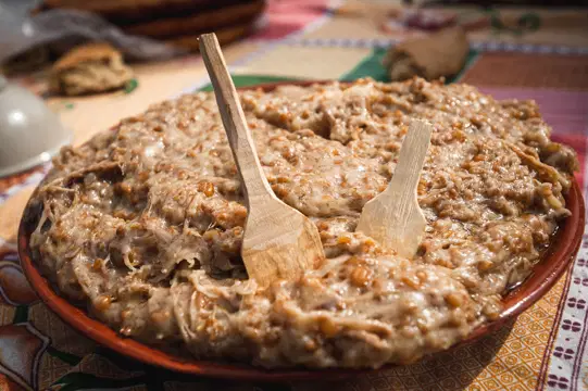 Тем временем история блюда действительно старинная и непосредственно связана с весенним праздником. Все дело в весенней пшенице. Люди верили, что перед тем, как посеять злак, его нужно приготовить в казане. Пшеничные зёрна после мельничной обработки делят на три части: крупный, средний помол и измельчённая мука.