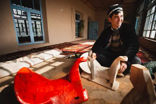 В гостях у одной семьи мне повезло наблюдать процесс изготовления седла из цельного куска дерева. Это спортивные сёдла, предназначенные для купкари, поэтому у них такая конфигурация – для амортизации во время скачек.