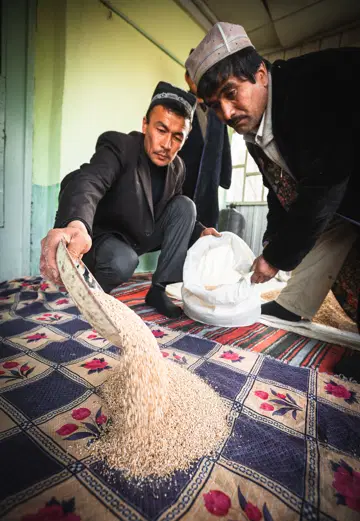 Приехав, мы застали подготовку к празднованию Навруза в самом разгаре. Одной из главных традиций в этом кишлаке является приготовление халима – максимально питательного и очень вкусного блюда из мяса и пшеницы.