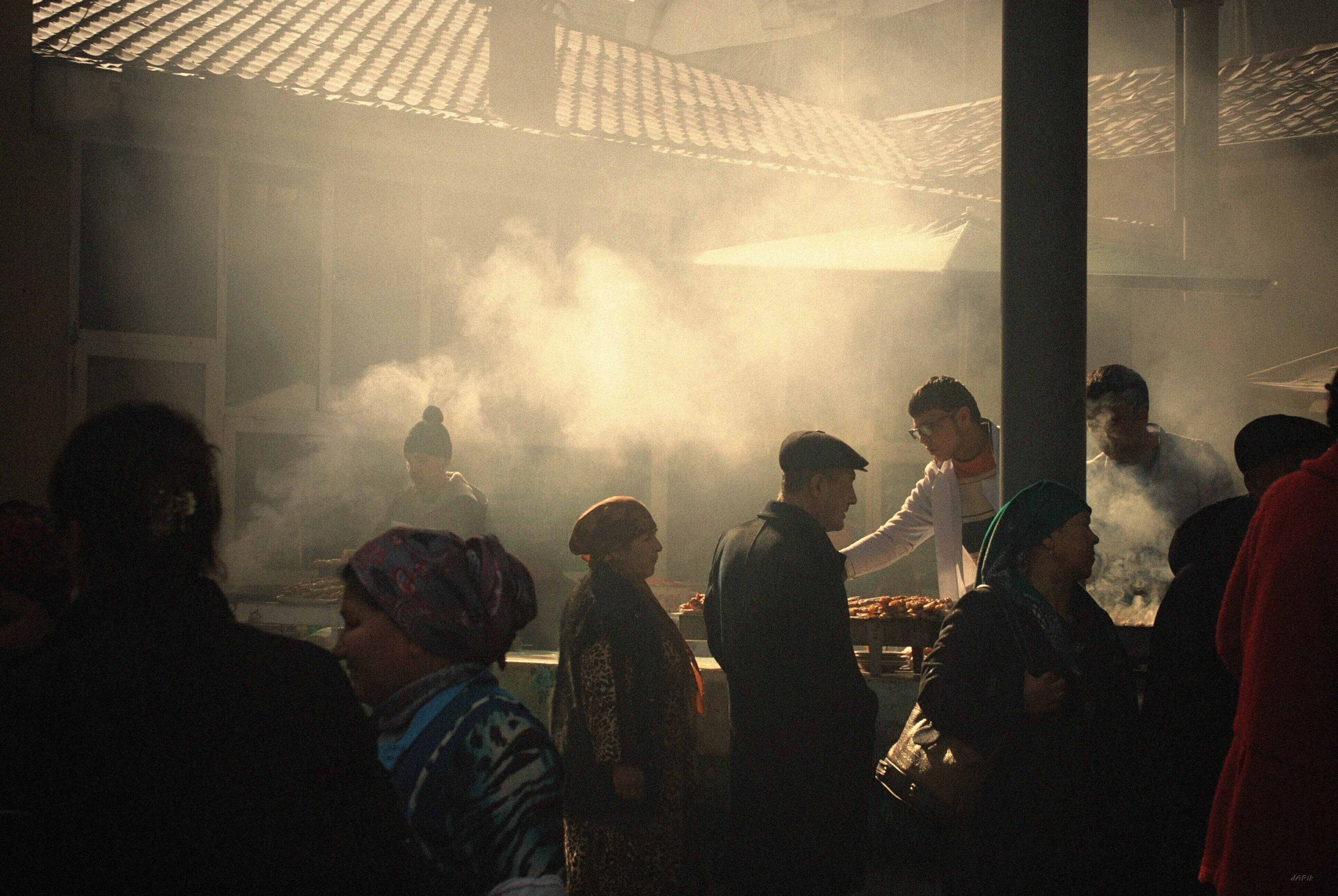 На базар издавна приходили всей семьей. В первую очередь шли в баню — они были при каждом крупном базаре. А дальше, оставив жёнам хозяйственные заботы, мужчины собирались в чайхане испить чаю и узнать новости за неделю. Сюда являлись глашатаи, чтобы объявлять указы, принятые владыками города, стекались лицедеи, ремесленники, мастера. Здесь проводились птичьи бои, представления и другие культурные мероприятия.