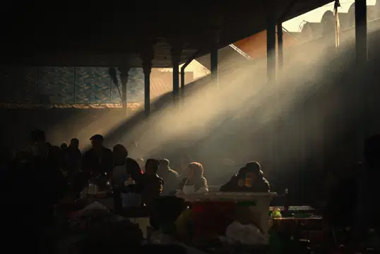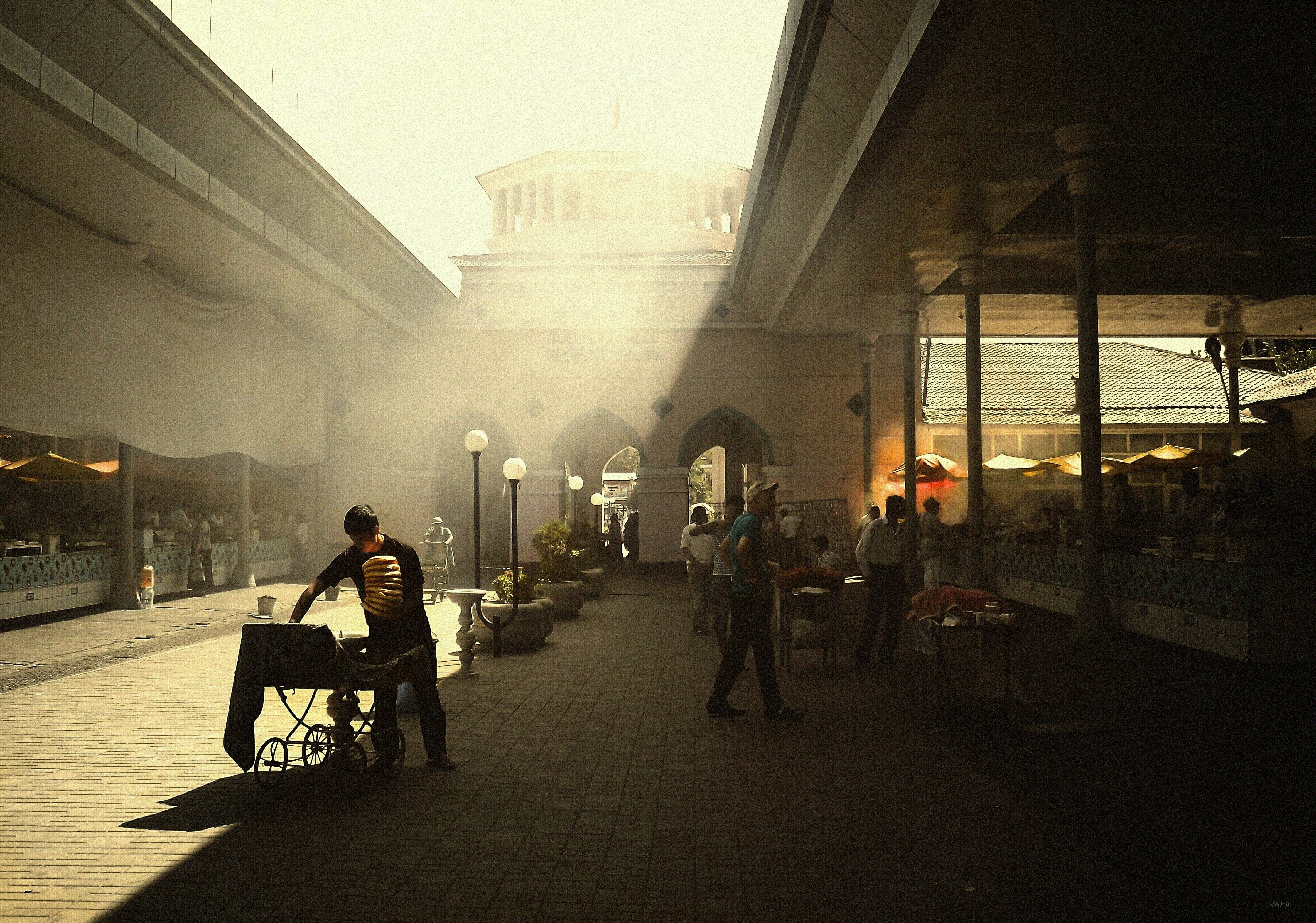 Крупный базар на Великом Шёлковом пути круглые сутки жил своей суетной, полнокровной жизнью. Это был целый инфраструктурный комплекс: караван-сараи, торговые ряды, баня, мечеть и, конечно, многочисленные чайханы.