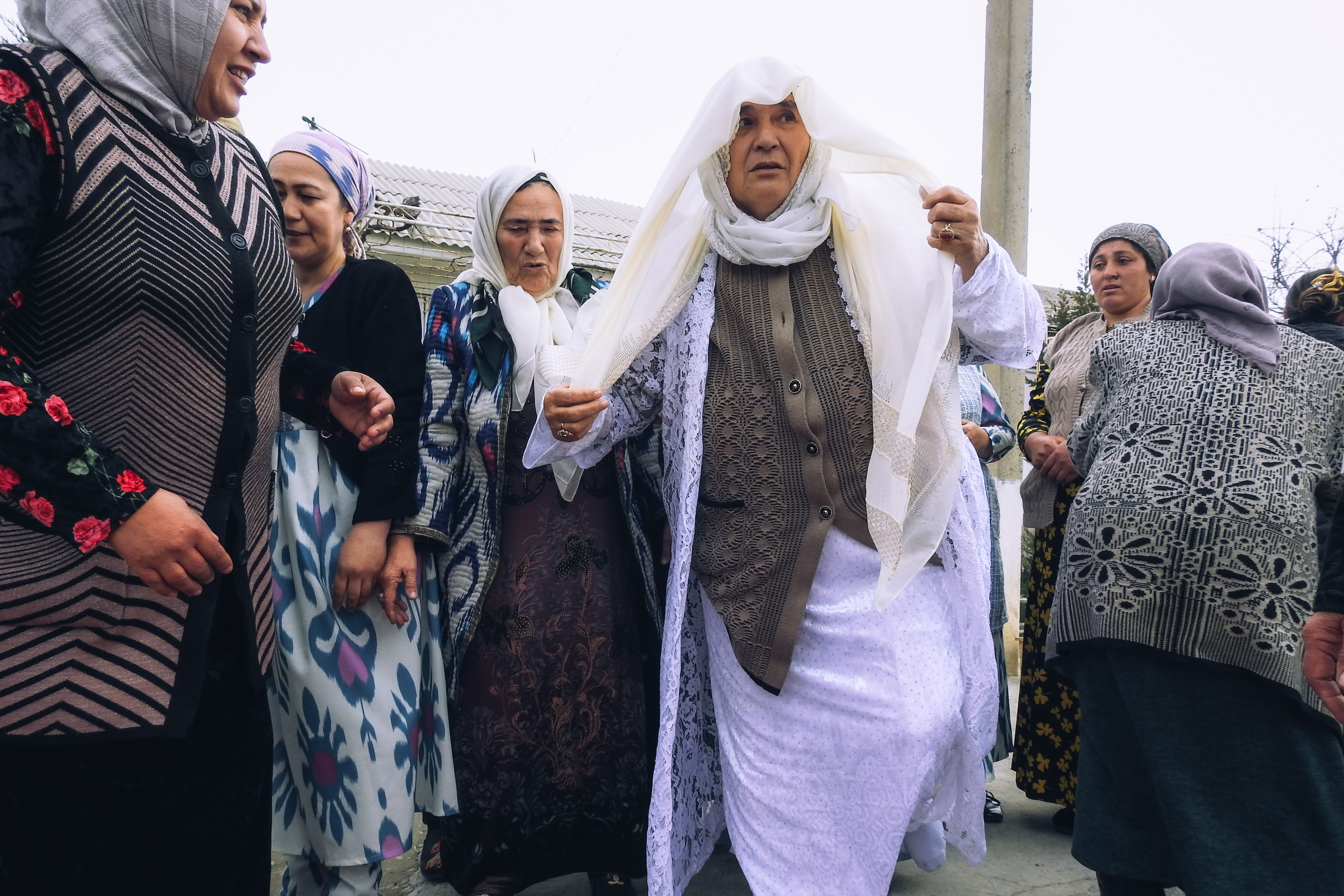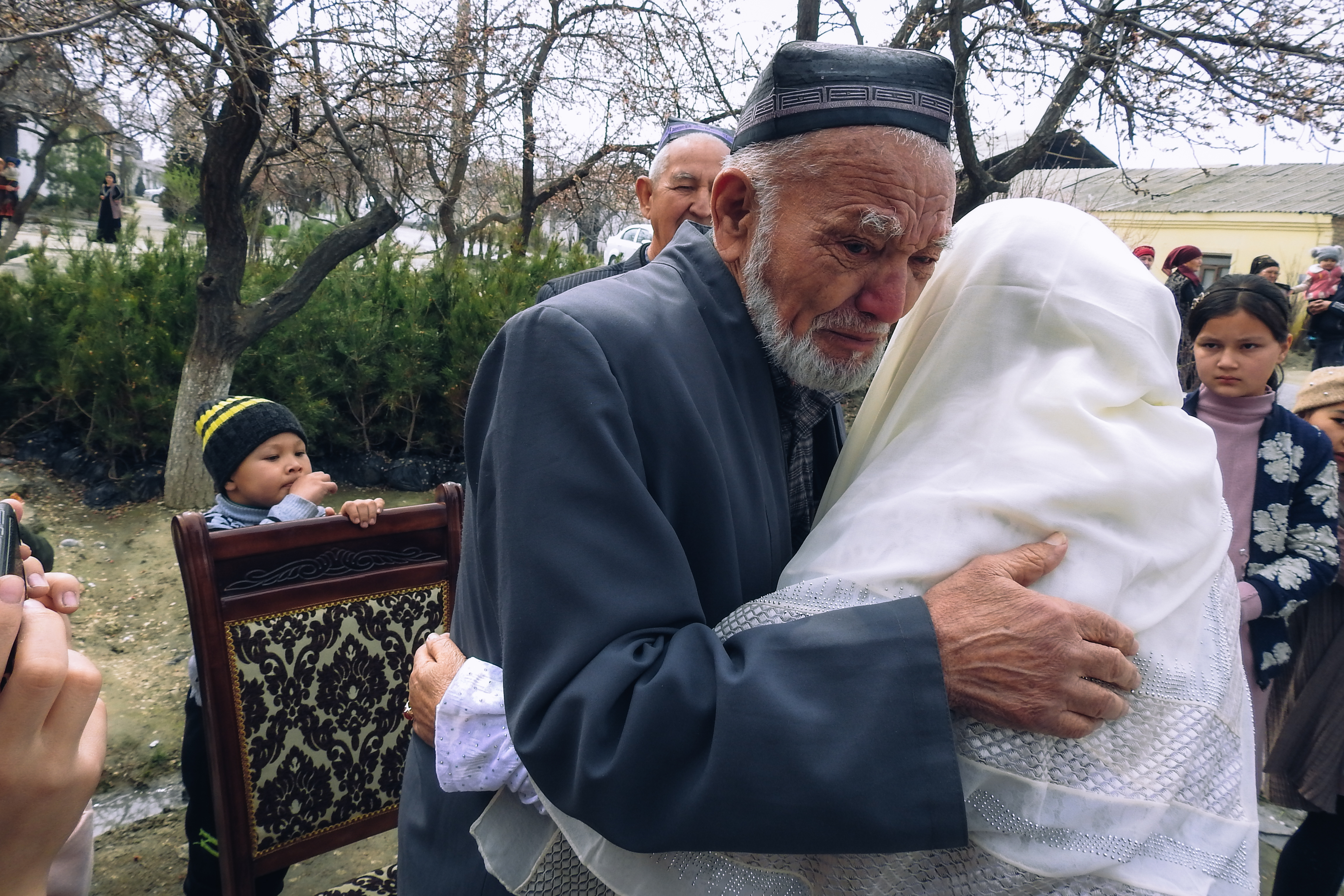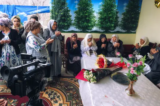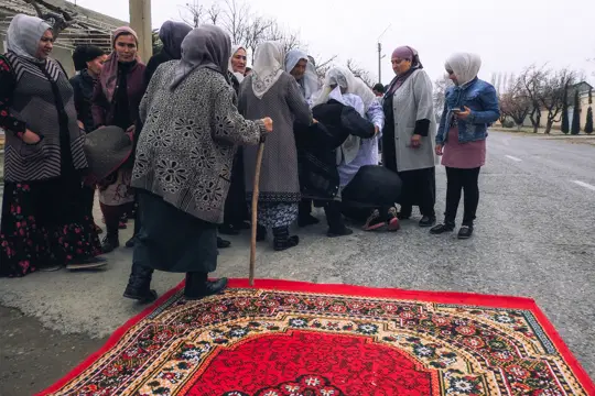 Машина подъезжает, и первыми Шарофат-опу встречают женщины семьи — сёстры, дочери и внучки. Объятия в первый момент особенно тёплые. Молодые женщины не раз порываются падать ниц и целовать ноги Шарофат-опы, но та настойчиво пресекает их попытки. Приходится даже повысить голос: трепетное почтение не должно переходить в поклонение, ведь склонять голову можно лишь перед Аллахом.