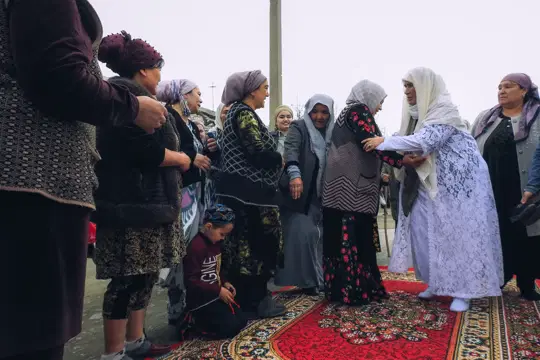 Несмотря на церемониальную пышность подготовки, мероприятие длится недолго, ведь Шарофат-опа утомлена с дороги и ей необходимо отдохнуть.
