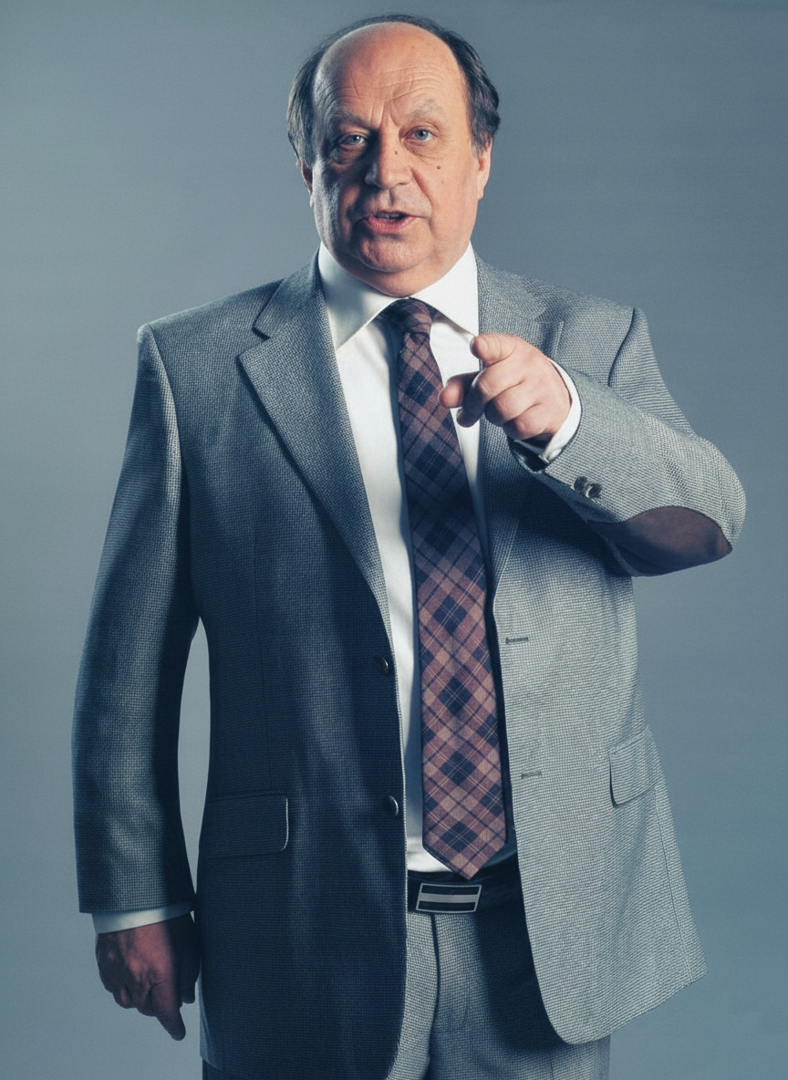 Со стороны он казался очень строгим, ну, директор и художественный руководитель театра и должен быть таким. У него вся работа в театре была выстроена как часы, все знали: что, как и когда нужно делать, а в жизни он был большой юморист! Он прекрасно шутил, причём с очень серьезным лицом — и непонятно было, шутит он или говорит серьёзно.