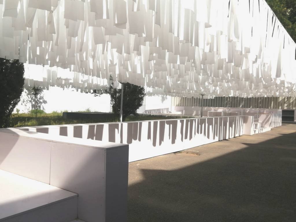 “Korrupsiyaga qarshi kurashish agentligi binosi – mening O‘zbekistondagi birinchi mualliflik loyiham. Uning peshtoqida g‘isht teksturali qoplama asosiy o‘rin egallaydi. Dastlab fibrotsement fasad panellari rejalashtirilgan edi, ammo bojxona tartib-qoidalari tufayli loyiha byudjeti smetaga sig‘madi. Bu asosiy muammolardan biriga aylandi. Men hatto yangi dizayn variantini ko‘rib chiqdim. Biroq, oxir-oqibat biz muqobil yechim topdik – yetti qavatli binoning butun tashqi devorini qo‘lda g‘isht terish uslubida chizib chiqdik. G‘alati tuyuldi, lekin biz bu rejamizni amalga oshirishga muvaffaq bo‘ldik. Zamonaviy san’at markazining ichki hovlisidagi installyatsiya soyabon sifatida yaratilgan. Yozda u yer juda issiq bo‘ladi: daraxtlar umuman yo‘q, quyosh esa shafqatsizlarcha kuydiradi. Ayni paytda, markaz maydonchadan turli tadbirlar – kafe, kino namoyishlari va boshqa turdagi faoliyatlar uchun foydalanishni istagandi. Vazifamiz cheklangan byudjet bilan yozgi mavsum uchun ko‘p funksiyali tuzilmani yaratish edi. Yechim muvaffaqiyatli bo‘ldi: yengil matolar yorug‘lik va soya o‘yinini yaratib, qulay salqinlikni ta’minladi, shu bilan birga qurilish xarajatlari minimal darajada bo‘ldi”.