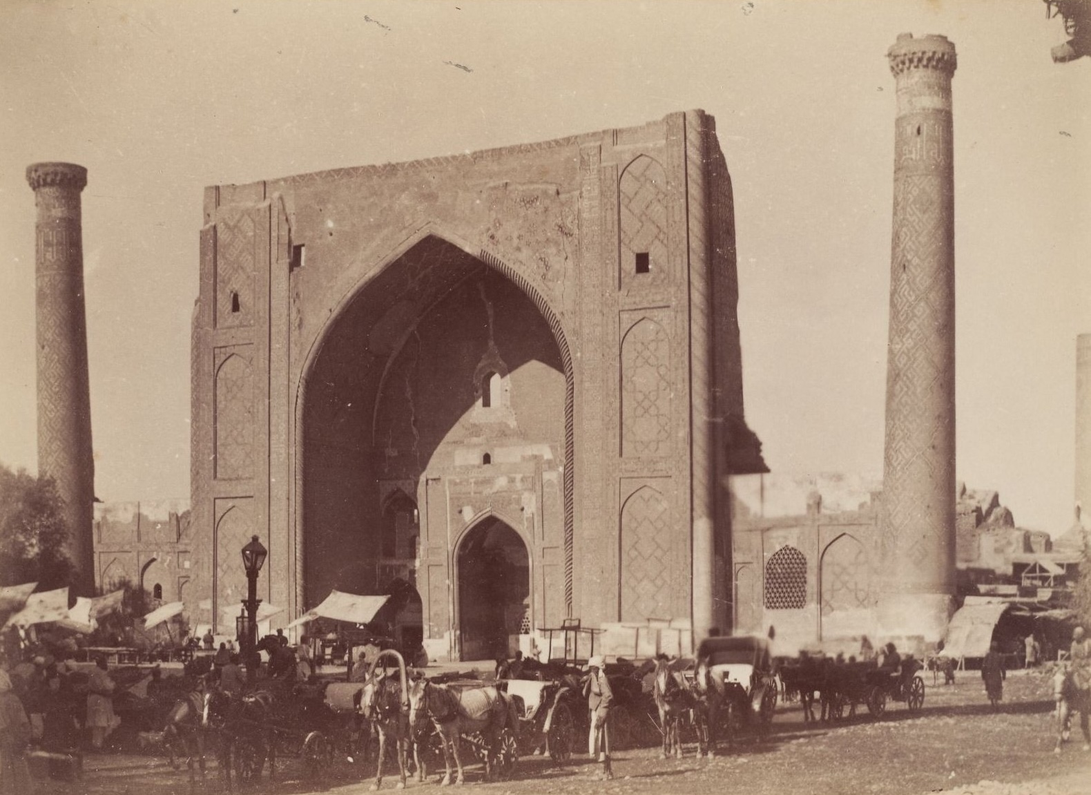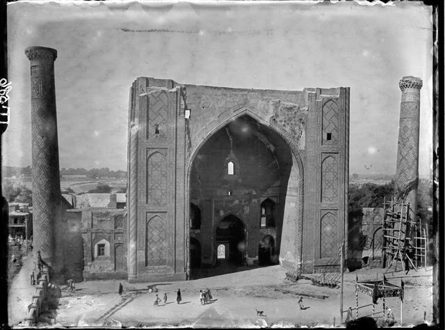 1918 yil kuzida do‘konlari Registon maydonida joylashgan muqovasozlar va zargarlar Ulug‘bek madrasasining minoralaridan biri yon tomonga sezilarli darajada qiyshayib qolganini payqashdi. XV asrda qurilgan minora poydevori 1897-yilgi kuchli zilziladan so‘ng shikastlangan edi. Xavotirga tushgan ustalar, o‘sha paytda Samarqand me’moriy yodgorliklarining nazoratchisi bo‘lgan arxeolog Vasiliy Vyatkinni chaqirtirishadi. Ulug‘bek rasadxonasi xarobalarini yillar davomida izlab topish va qazib o‘rganish uchun umrini sarflagan odam uchun buyuk munajjimning fojiali merosi quruq gap emasdi. Maydonga yetib kelgach, u madrasaning o‘ng, shimoli-sharqiy minorasining o‘z o‘qidan og‘ib, to‘g‘ridan-to‘g‘ri maydonga qulab tushish xavfi borligini ko‘rdi. Vyatkin Turkiston haqida barcha narsani bilardi (u ”Boburnoma”ni tarjima qilgan va mahalliy rus maktablari uchun o‘zbek tili darsligini yozgan edi), biroq qurilish materiallarining mustahkamligi haqida hech qanday ma’lumotga ega emasdi.