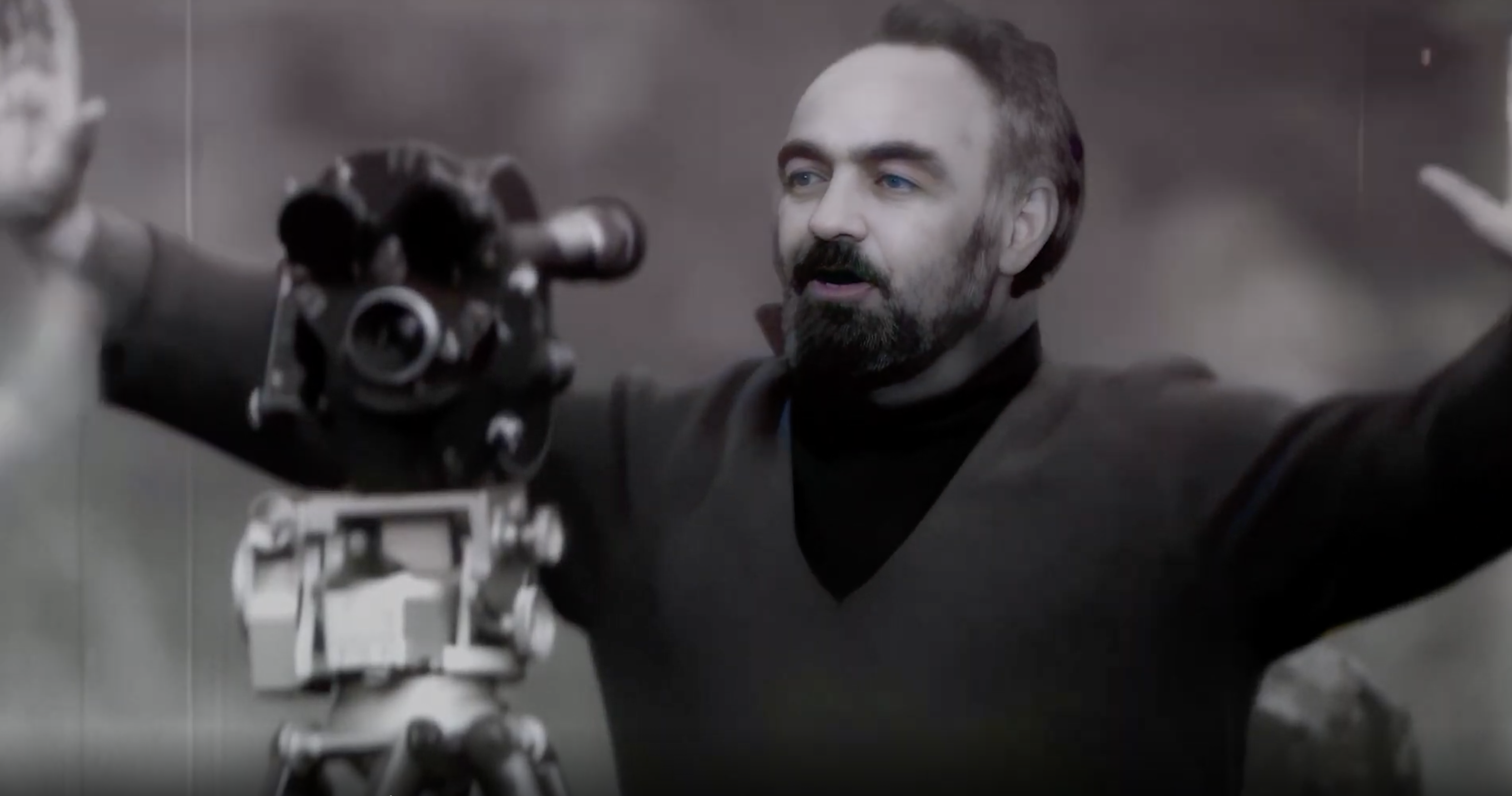 Keyin kadrda Parajanov to‘satdan tirik - kulib, bolaligini eslab paydo