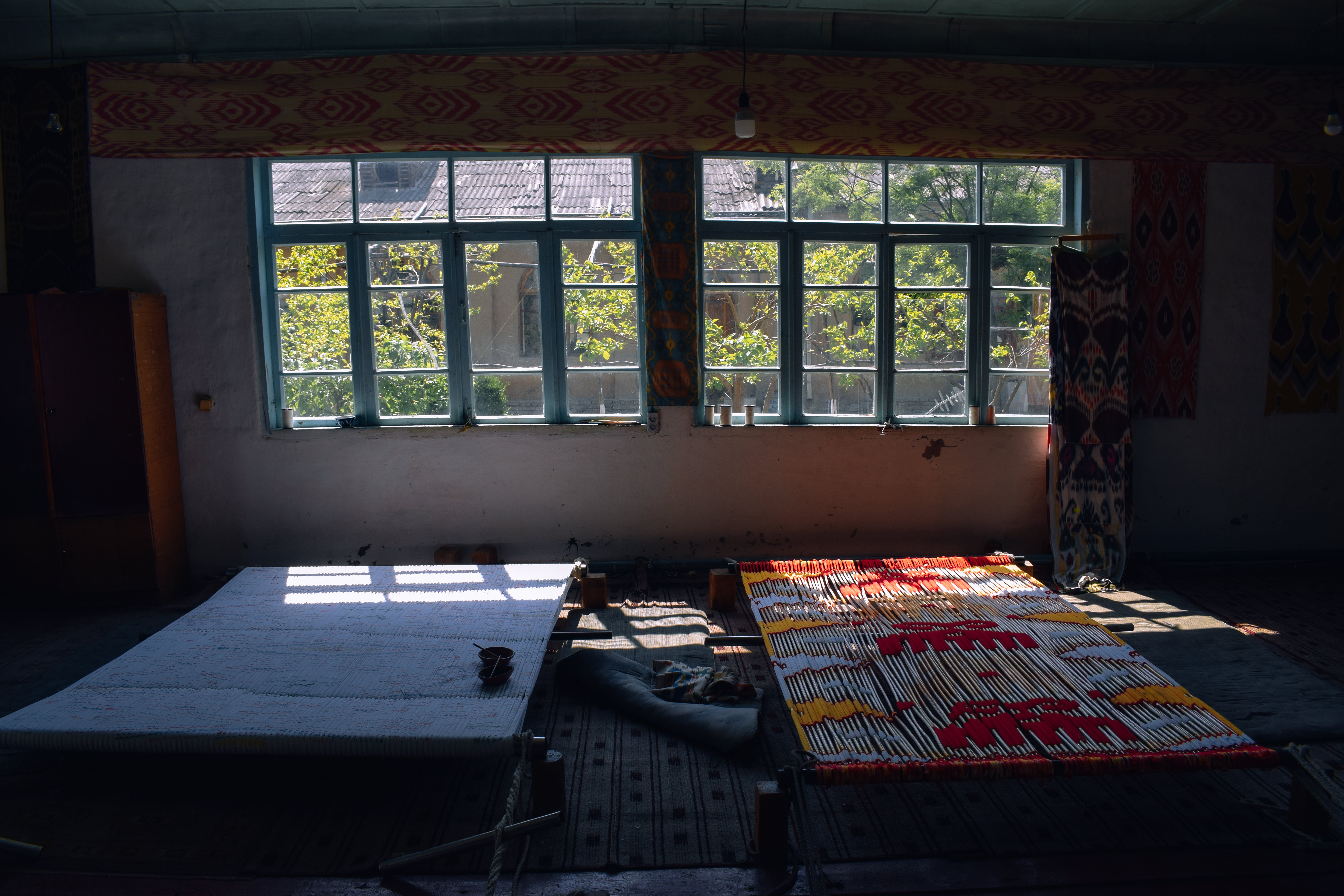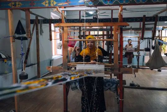 So'nggi bosqichlardan birida tayyor mato 6-8 pedalli to'quv dastgohiga ustaga keladi. Va shu yerda kundalik atigi 3-4 metr, bir qarich kenglikdagi naqshli qimmat matolar chiqariladi.