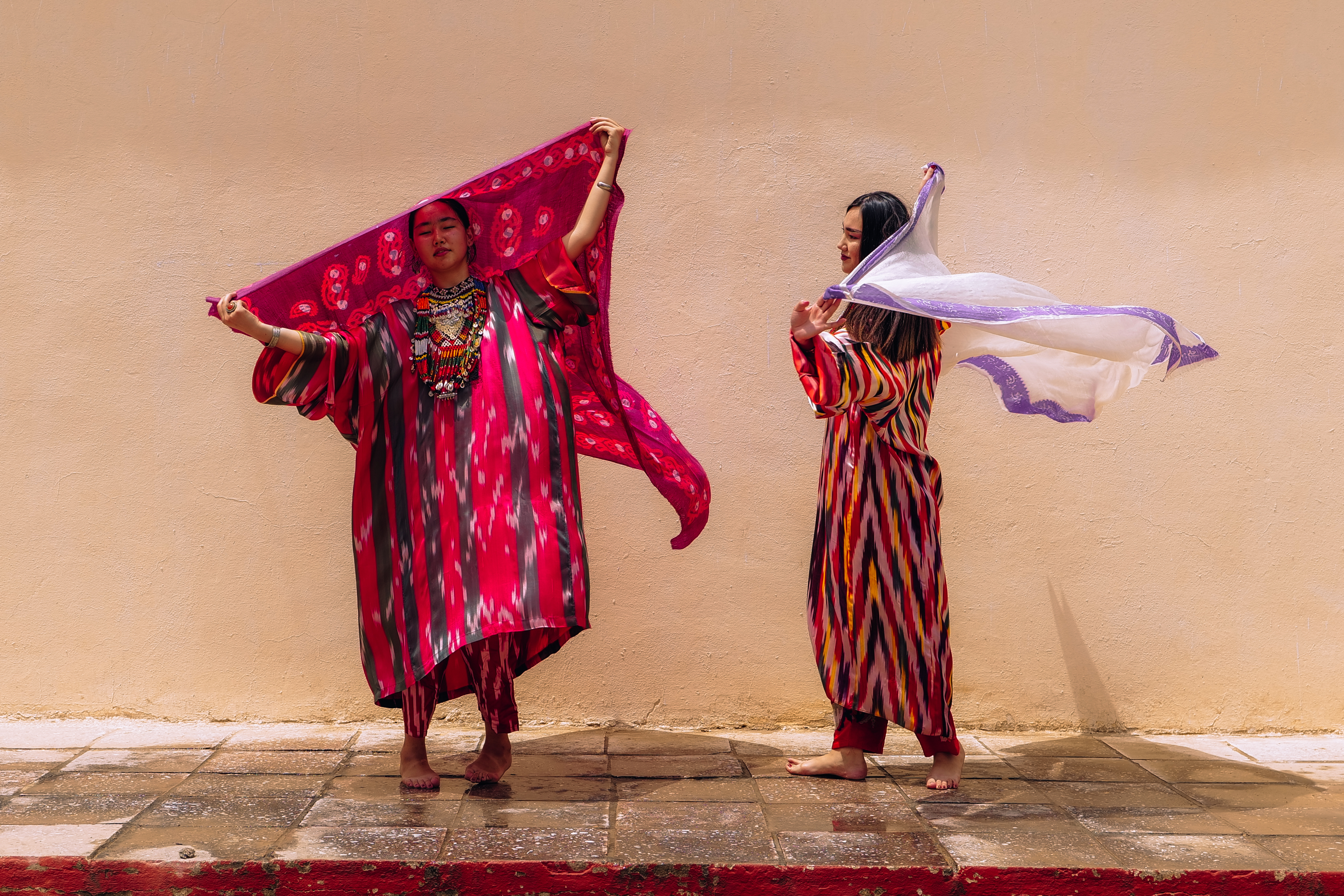 Eng qadimiy va muqaddas jarayon — tayyor cho‘zilgan iplarga naqsh solish, bu qadim zamonlardan beri amalga oshirilib kelinadi: odatda kul yoki loy bilan.